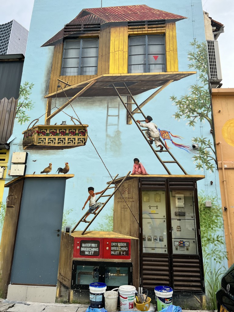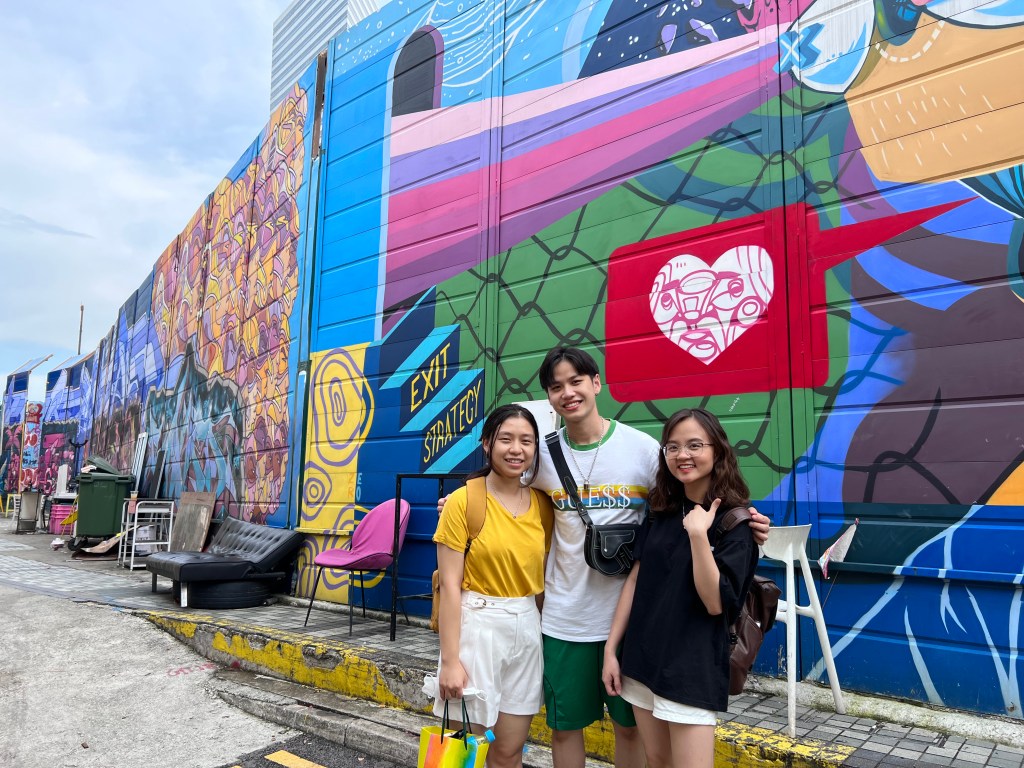 Đến nơi thì thấy đúng là hay ho thật. Để hợp với vibe khu này, công trường cũng được bao bọc bởi những bức tranh cực kỳ bắt mắt và thú vị. Đúng kiểu không nghệ thì chúng tôi không “trưng”. Lang thang vào sâu hơn bên trong thì mình càng bị bất ngờ bởi độ “hay” của khu này. Kiến trúc khu này đa phần đều là nhà nhỏ, nhà cấp 4 hoặc nhà tầng thấp (2-3 tầng), nhưng nhà nào cũng được được trang trí hoặc bao bọc bởi các bức tường với lối vẽ ấn tượng, đúng chất nghệ thuật đường phố. Bạn mình cũng có kể là Billie Eilish cũng có lần ghé qua đây để check in khi đi lưu diễn ở Sing, nên mọi người có thể qua làm kiểu ảnh để có “cheap moment” với em ý cũng ổn ạ.