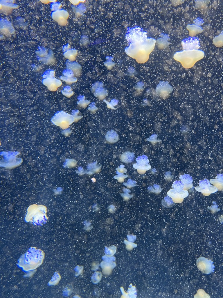 Một trong những điều tớ ấn tượng nhất là cách họ sắp đặt lộ trình khám phá, tham quan Thuỷ cung. Có nhiều loài sinh vật cậu có thể khám phá/nhìn thấy ở nhiều nơi trên thế giới, nhưng có lẽ không phải nơi nào cũng thiết kế tỉ mỉ về màu sắc, cách bài trí, cách nhìn ngắm như ở đây. Có đoạn tớ phải chui vào hang để được ngắm mấy chú cá =)). Hay có lúc phải nhìn xuống đất để thấy các em đang bơi, nên cảm giác thu về là khá “wow và hạnh phúc”.