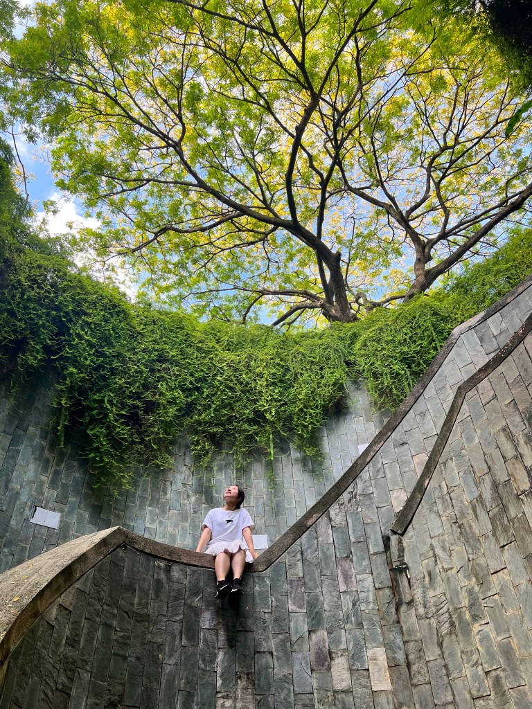Fort Channing Tree Tunnel là một trong những địa điểm check in mà bạn của Hành gọi là “địa điểm check-in mới của giới trẻ Sing”, vì nó ở Sing mấy năm rồi cũng chưa đến Fort Canning Tree Tunnel nữa =)). Đứa em mình mới đi Sing 2-3 năm trước thì còn nhắn tin than sau khi xem story của mình là: “Chỗ nào đẹp thế chị Yến. Hồi em đi chưa có cái này để check in”. Thì mọi người biết là Fort Canning Tree Tunnel mới, đẹp và hút mắt như thế nào rồi đấy. Một chiếc giếng trời đẹp mê ly với tán cây siêu xanh, lấp lánh giữa ánh nắng vàng.