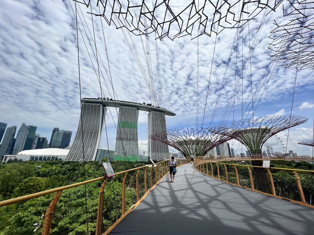 Hồi mới đi mình đọc không kỹ nên cứ tưởng chiếc Sky Walk là miễn phí nên không mua vé từ trước, đến lúc cần phải lộn ra ngoài tầm 500-600m để mua vé, nên hơi bất tiện. Nhưng cách người Sing bài trí và trồng cây trong khu này quả thực rất chỉn chu và sạch sẽ. Chiếc Sky Walk cũng đi không được quá dài, nhưng lên đi bộ có thể ngắm nhìn thành phố Singapore, cũng như tìm hiểu xem đỉnh những ngọn “cây nhân tạo” có gì, nên ai thích ngắm nhìn không gian rộng thì mọi người đừng bỏ lỡ nha. Bạn Hành thì thích đi dạo rồi ngắm nhìn mọi thứ nên là bỏ tiền ra cũng không thấy tiếc ạ =)).