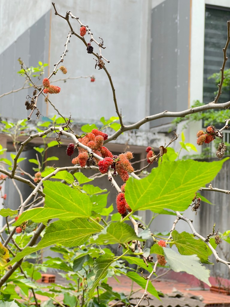 Hôm trước qua Năng, thấy có Nước dâu tằm theo mùa trên Menu, mình order ngay tắp lự. Loanh quanh một hồi, mình nhận ra, sau lưng Năng có một cây dâu tằm, to, cao, trĩu quả. Giây phút ấy, mình hào hứng như một đứa trẻ, nhướn người lên nhìn xem có quả nào chín tím, vui mừng như có tấm vé về tuổi thơ.