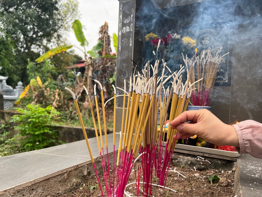 Nghe thì hơi duy tâm, nhưng suốt 4 năm đại học ở Nhật, một đứa yếu bóng vía như mình lại có thể an yên, mạnh mẽ ở đất anh đào, một phần là vì mình tin: Sẽ luôn có tổ tiên, có Kỵ, có Cụ chở che, bảo vệ. Vậy nên, từ bé đến lớn, cứ một lần vượt qua một khó khăn, may mắn nhận được một kết quả tốt, mình lại thầm cảm ơn vì có các cụ gánh gồng. Có lẽ vì vậy, mình vui. Mỗi lần về thăm mộ như một lần mình được về chơi nhà Kỵ, nhà Cụ, thăm nom, chăm sóc, bày tỏ lòng biết ơn trong phận cháu con.