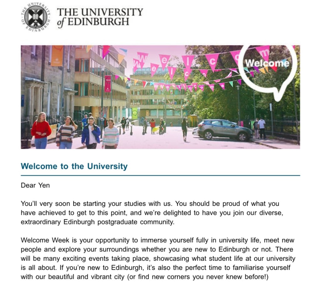 Vậy nên, dù lỡ vô duyên với học bổng Chevening, ngày nhận được thư mời học và kết quả học bổng từ Đại học Edinburgh, Bath và York, với sự ủng hộ của bố mẹ, tớ quyết tâm bước thử trên con đường mình ước mơ.