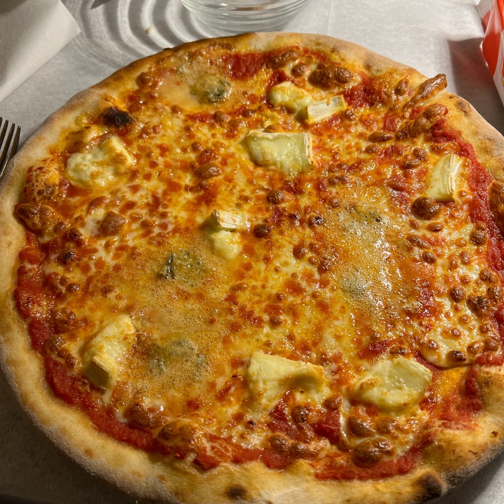 Cheese được mix cực kỳ chất và siêu hợp. Khác với four cheese ở nhà thiên về vị ngọt, four cheese ở đây thơm đậm hương các loại phô mai và thiên về vị chua, do có sử dụng thêm sốt cà chua ở lớp topping. Mỗi loại cheese đều cực kỳ toả sáng theo cách riêng. Có bé thì dai thơm, có bé thì hơi mặn, ngai ngái nhưng siêu ngậy, có bé lại mềm ẩm, miếng cheese siêu bự nên thử một miếng thôi là thế giới này tràn ngập phô mai. Với một đứa siêu thích phô mai như tớ, four cheese ở đây thực sự là siêu ấn tượng. Chỉ có một lưu ý nhỏ là nếu cậu thích four cheese thiên ngọt, thì có lẽ pizza ở Da Mamo có lẽ không phải là lựa chọn hàng đầu của cậu (mà là một hàng khác ở Rome tớ sẽ chia sẻ ở dưới), nhưng nếu cậu ưng vị thơm ngậy và hơi chua nhẹ, thì chắc chắn phải thử four cheese ở đây nhé!