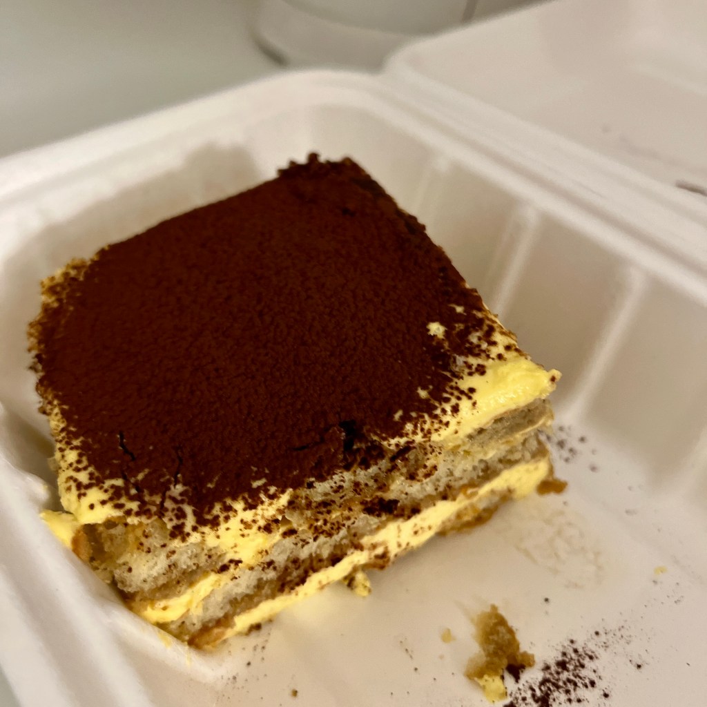 Kem mascarpone ngậy, thơm, béo nhưng không ngấy, không quá ngọt. Lớp bánh vừa đủ ẩm, thơm mùi hương cà phê đặc trưng. Lớp chồng lớp vừa phải, hoà quyện điệu nghệ tạo ra một hương vị rất vừa ăn, thơm ngọt, khó quên. Đối với tớ, sự vừa vặn là một điều thực sự đáng quý trong ẩm thực. Khẩu vị, cách nấu của mỗi người khác nhau. Như món nem rán đặc sản, cậu chỉ cần tổ chức một buổi làm nem đủ 3 miền đất nước là đã đủ để chứng kiến rất nhiều sự kết hợp đa dạng, chẳng công thức nào giống hoàn toàn công thức nào. Không dễ để tìm được một lựa chọn vừa miệng, mình không muốn chỉnh thế này, bỏ cái kia. Vậy nên, sự một tổng thể hài hoà, không quá ngọt, không quá béo, không quá đậm cà phê, mà rất vừa vặn của chiếc tiramisu ở đây là đủ để tớ thương nhớ.