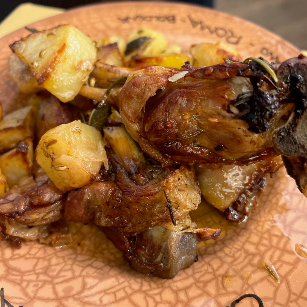 Osteria da Fortunata nằm chễm trệ trong danh sách “phải thử” của bọn tớ kể từ khi ở Thuỵ Sĩ, ngồi xem vlog của chị Dương – anh Long. Đây cũng là nhà hàng đầu tiên bọn tớ ghé ở Rome, và thật may sao, review của chị Dương quá hợp rơ khẩu vị của tớ. Tớ hiểu, đặc biệt là ở chủ đề ăn uống, mọi sẻ chia đều là trải nghiệm và cảm nhận cá nhân. Giống như những điều Hành chia sẻ trong bài blog này chẳng hạn, chưa chắc những món ăn, nhà hàng tớ ưng đã phù hợp với khẩu vị của mọi người, và những điểm tớ khen có thể sẽ là điểm cậu chê. Nhưng tớ vẫn thích lắng nghe chia sẻ của mọi người và sẻ chia những trải nghiệm của bản thân, với niềm tin rằng mỗi câu chuyện, sẻ chia bằng cách nào đó sẽ giúp mình chúng mình có thêm một vài góc nhìn mới (Thế nên, mọi người thử trải nghiệm những quán tớ khen mà không ưng lắm, thì giơ cao đánh khẽ với tớ nha ^^). Và nhờ những trải nghiệm của chị Dương, tớ đã biết thêm một quán có mấy món siêu hấp dẫn và quan trọng là được thử “tiramisu ngon nhất thế giới”. Chuyện Tiramisu, tớ sẽ kể ở phần sau, còn bây giờ, tớ xin hướng spotlight về với Strozzapreti Carbonara và Baked Lamb with Potatoes (Seasonal dish) với Chicory tại Osteria da Fortunata.