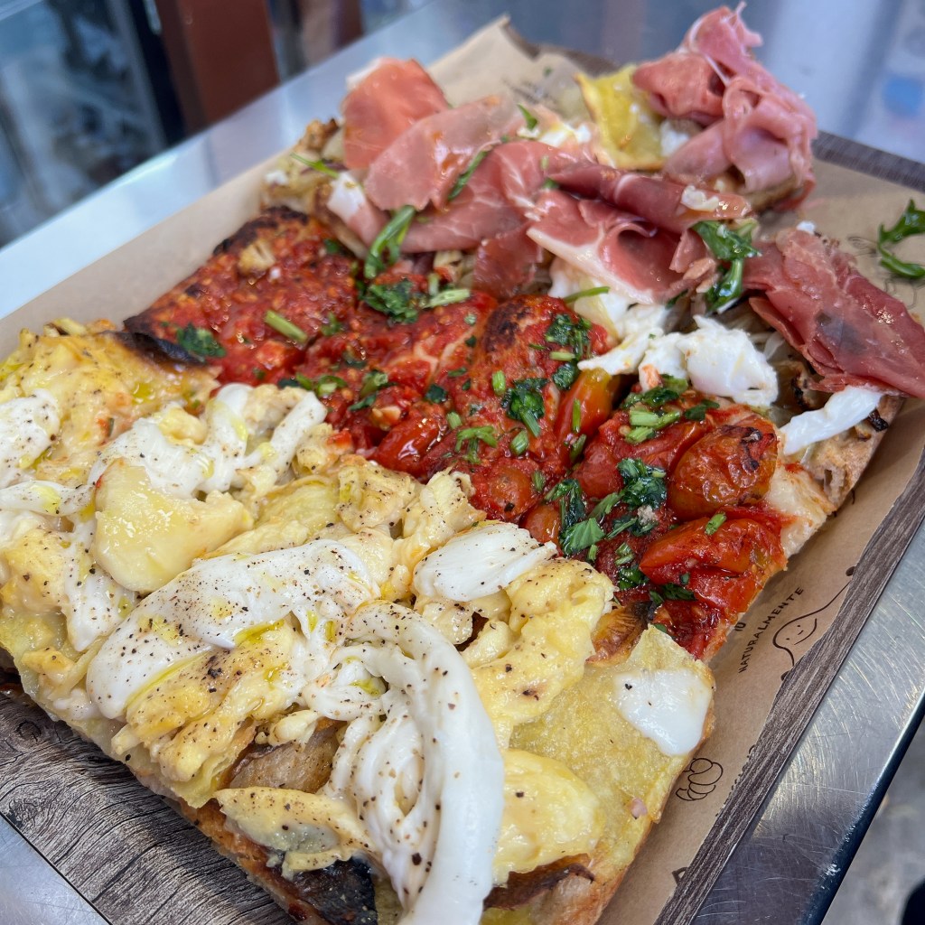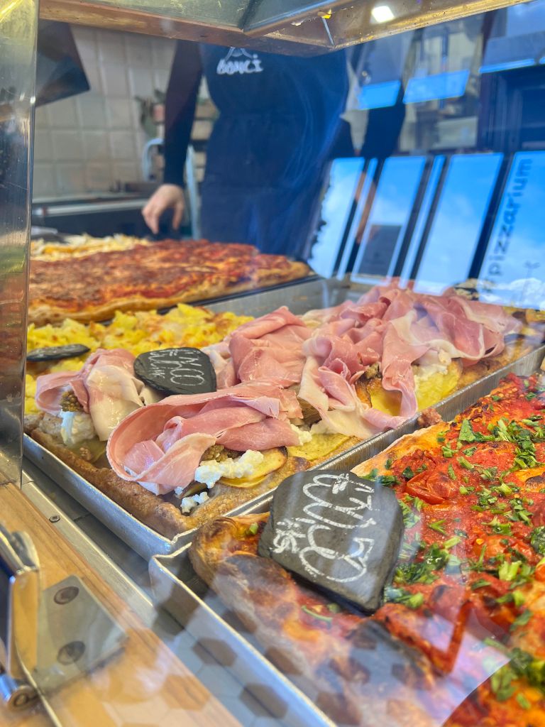 | Bonci Pizzarium – 4.1⭐ trên Google (11.070 lượt đánh giá) | Pizza | Pizza cực kỳ độc đáo và đa dạng. Bán theo cân, cắt miếng vừa ăn hình chữ nhật. Vị tròn, ngon, dù hơi lạ miệng. | Giá cả hơi cao so với mặt bằng chung. |