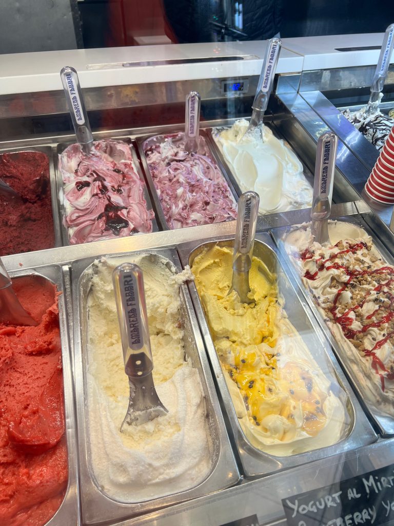 Từ bé tớ đã luôn hào hứng mỗi khi được mẹ cho tiền đi ăn gelato, đến khi đã đi làm, tớ và hội bạn vẫn cố gắng tích tiền để thử một vài hàng gelato ở Hà Nội, xem tiệm nào có thể chinh phục được những thực khách khó tính như chúng tớ nhất. Thế nhưng, chẳng so sánh nào là hoàn hảo nếu tớ chưa biết đến gelato ở chính nơi món tráng miệng ngọt ngào này sinh ra. Vậy nên, đến Ý thì kem đương nhiên dễ dàng có một chỗ trong danh sách những món làm tớ háo hức muốn thử nhất. Quả thực, nhờ chuyến đi này, tớ đã có cái nhìn cực khác về kem Ý.