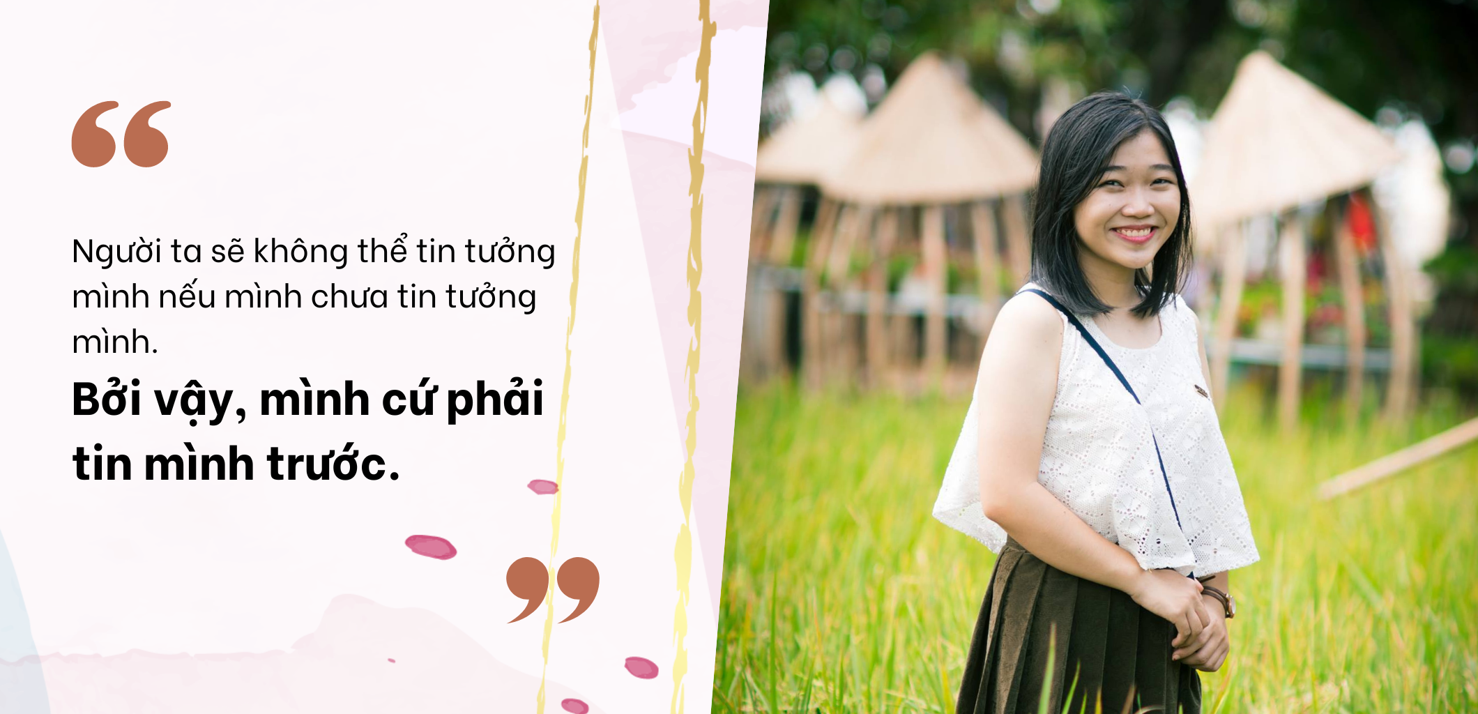 “Chị dần học cách cởi mở, sẵn sàng nói chuyện và chia sẻ suy nghĩ của mình với các bạn nhiều hơn. Sau đó, tình hình cải thiện hơn rất nhiều. Người ta sẽ không thể tin tưởng mình nếu mình chưa tin tưởng mình. Bởi vậy, mình cứ phải tin mình trước.”